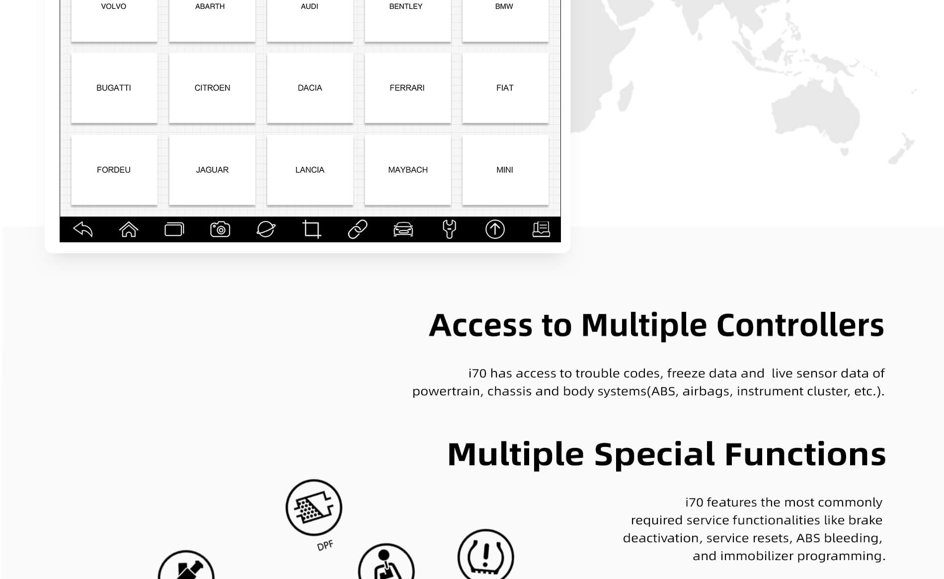 i70 inherits the same Foxwell advantages in car fault diagnostic tech, such as multi manufacturer coverage, service functions and accurate test data, making it the perfect tool for busy garages or workshops, who need the latest technology at unbeatable value.