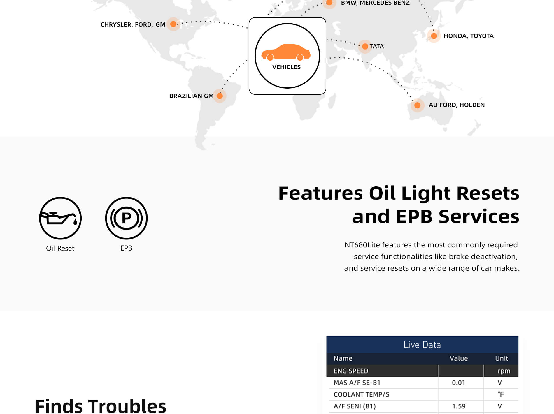 NT680Lite is delicately designed for pros and enthusiasts to pinpoint engine, transmission, ABS and airbag faults on major American, Asian and European makes. It offers technicians accurate,stable and easy diagnosis.
