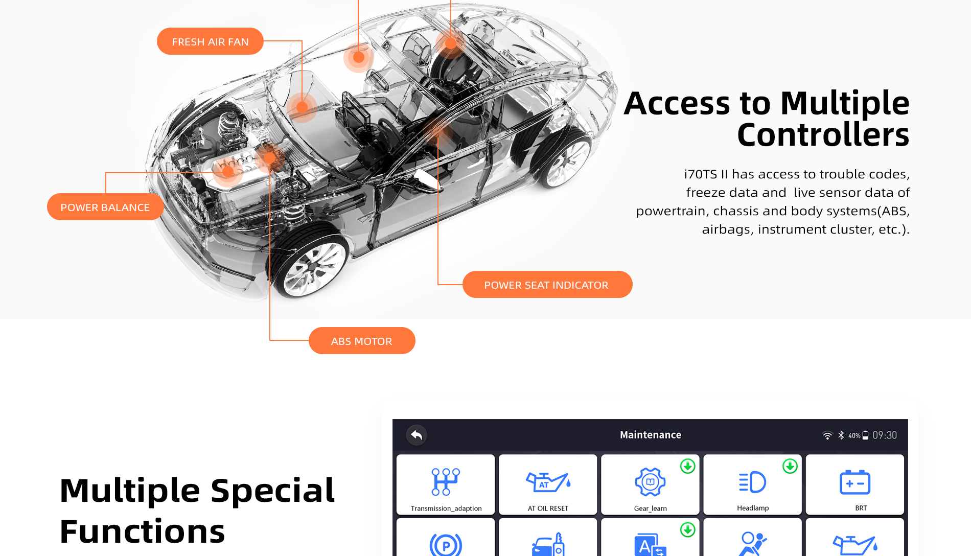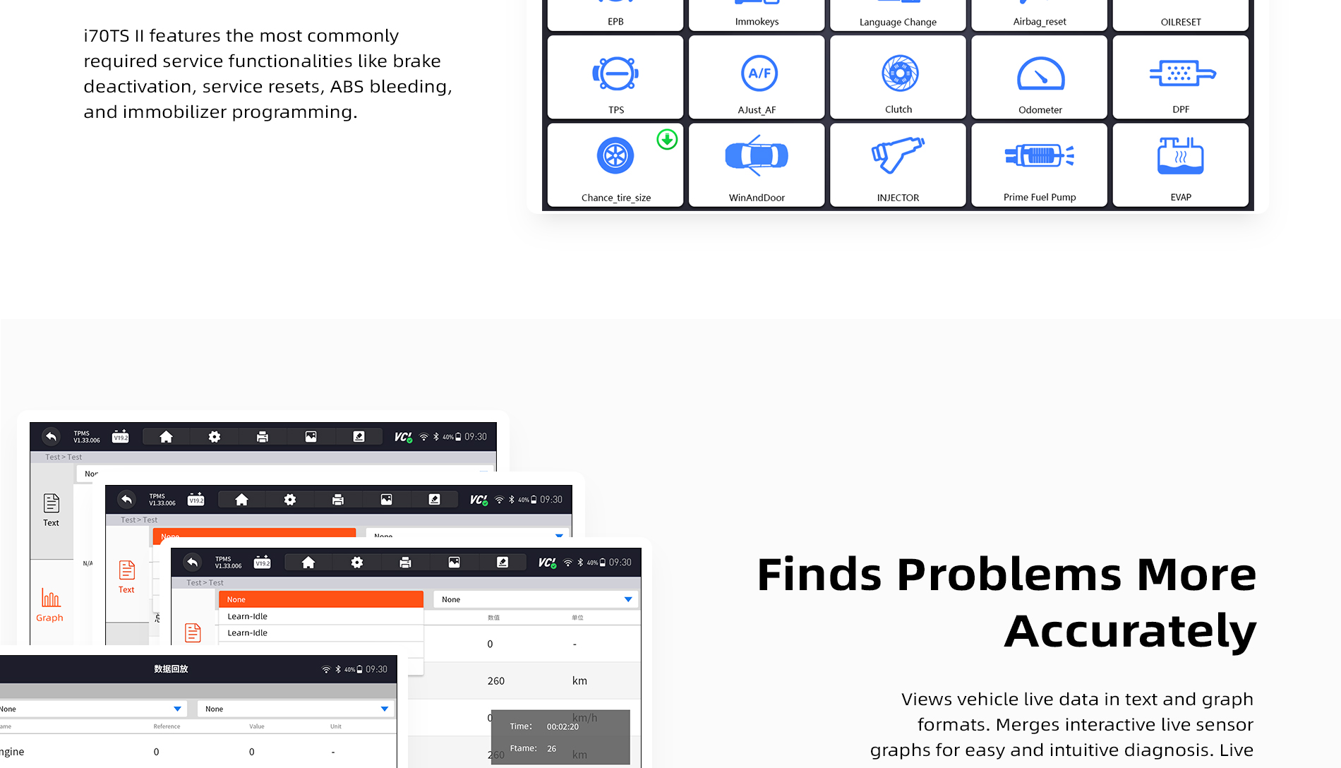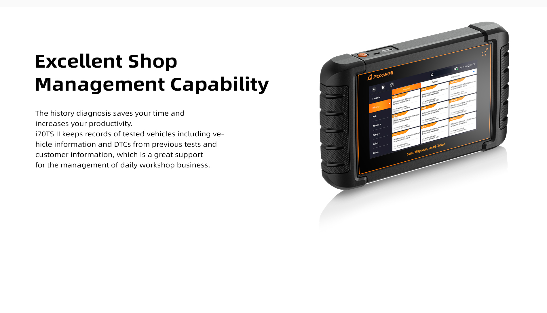 i70TS II is newly developed diagnostic scanner with Android 9.0 operating system. It not only inherits the same Foxwell advantages in car fault diagnostic tech but also initially integrates with TPMS service function, including TPMS health check, sensor activation & programming and TPMS relearn. It brings great convenience and efficiency for global workshops and technicians.